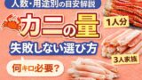 かに本舗は“実在の会社情報と長年の受賞履歴を公開している”“特設LPの情報量が多く比較しやすい”“半むき身・脚肉むき身など実用性の高い加工品が充実”という強みがありつつ、口コミでは“サイズ感ギャップ”“塩味の感じ方”に不満が出やすいという弱点も見えました。失敗を避けるには、①人数と用途を決めて規格(L)・本数・人前表示で選ぶ、②解凍は冷蔵でじっくり、③年末は2〜3日余裕をもって受け取る。この3点を押さえれば、満足度はグッと上がります。最後は“鍋・しゃぶ中心か、見た目重視か”の好みでラインを選び、キャンペーン期にクーポンやポイントを上手く絡めてお得に手に入れましょう。