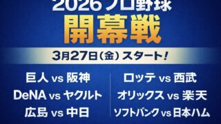 2026年プロ野球の開幕カードと日程をわかりやすく解説。3月27日(金)の開幕戦6試合の対戦カード、球場、開始時間に加え、3月28日・29日の開幕3連戦スケジュールや注目ポイントまでまとめてチェックできます。